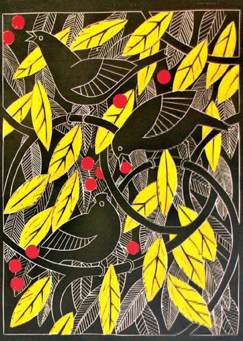 Blackbirds in a Crab Apple Tree