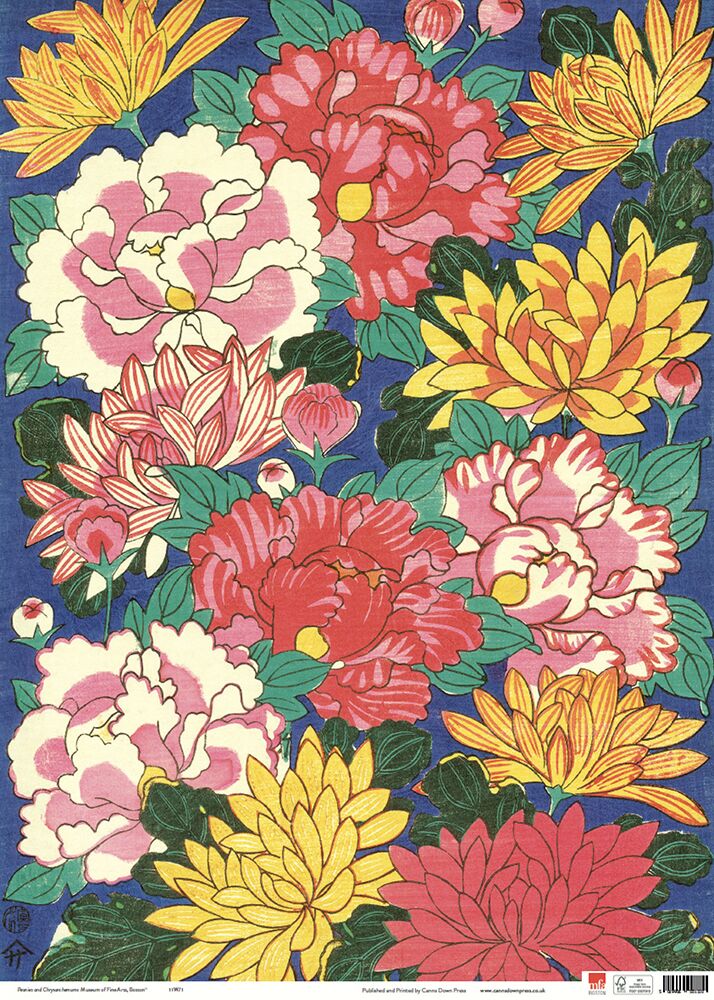 Peonies and Chrysanthemums Gift Wrap Sheet