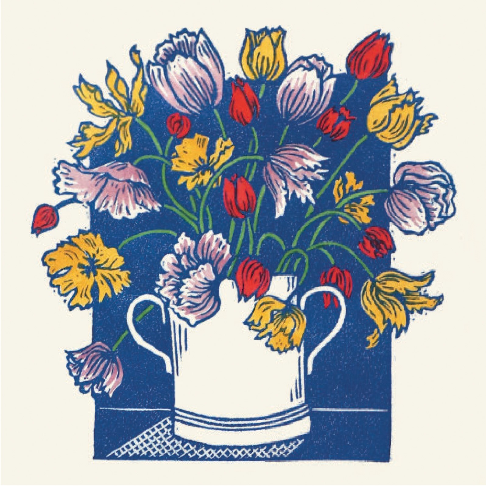 ‘Transferware Tulips’ by Sophie Elm is a beautifully illustrated art greeting card from our Wonderland Range. Sophie’s inspiration for the print comes from her love of tulips and transferware pottery, where the designs are printed in one colour and then certain details are hand painted.