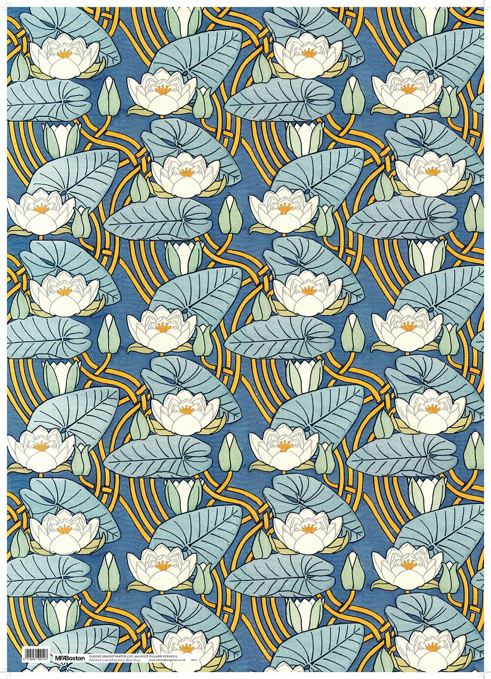 Single Sheet Wrapping Paper – ‘Water-Lily’ plate 8 (detail) is from Eugene Grasset, Plants and Their Application to Ornament (London 1897) – a richly illustrated book created in collaboration with the Museum of Fine Arts, Boston that demonstrates how the forms of plants can inspire decorative art. Working in Paris, Grasset fused careful observation of nature with inventive stylisation, creating designs that shaped textiles, architecture and the applied arts. His elegant chromolithographs and original approach made him a major influence on many artists of the Art Nouveau movement, inspiring generations to blend natural forms with artistic imagination.