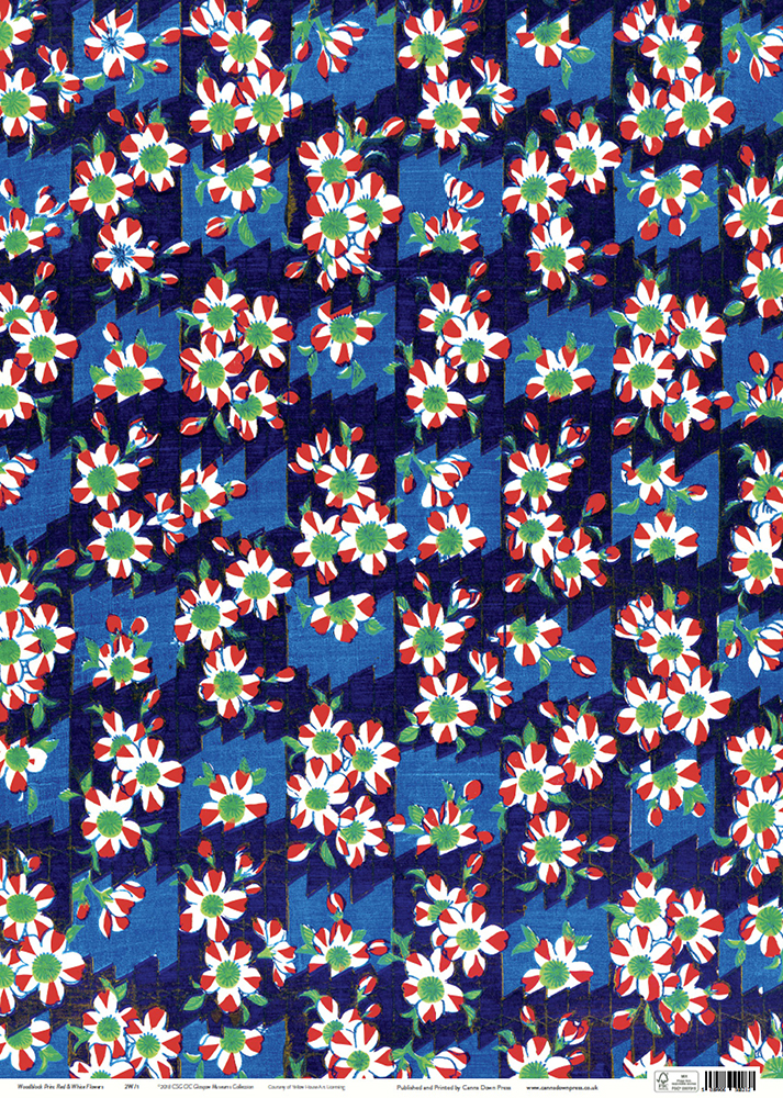 Woodblock Print Red & White Flowers Gift Wrap Sheet